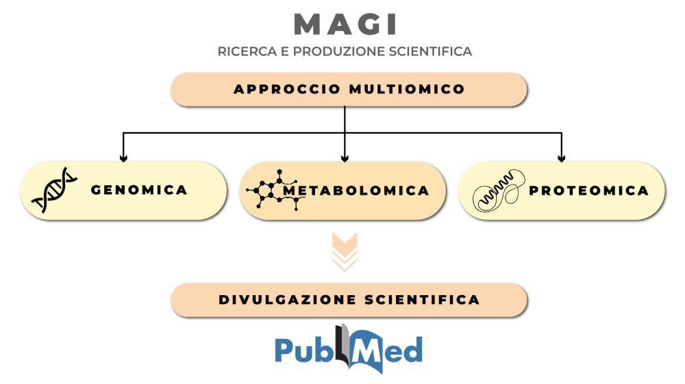 I Laboratori MAGI EUREGIO e MAGI’S LAB SRL fanno parte di una Rete di Impresa, il cui scopo è l’integrazione di diverse tecnologie all’avanguardia nel percorso di sviluppo dei test genetici e nella ricerca. Questo approccio innovativo si fonda sull’integrazione di dati omici, in particolare metabolomici e proteomici, a supporto dell’interpretazione del dato genomico al fin di ottenere un perfezionamento delle indagini diagnostiche.