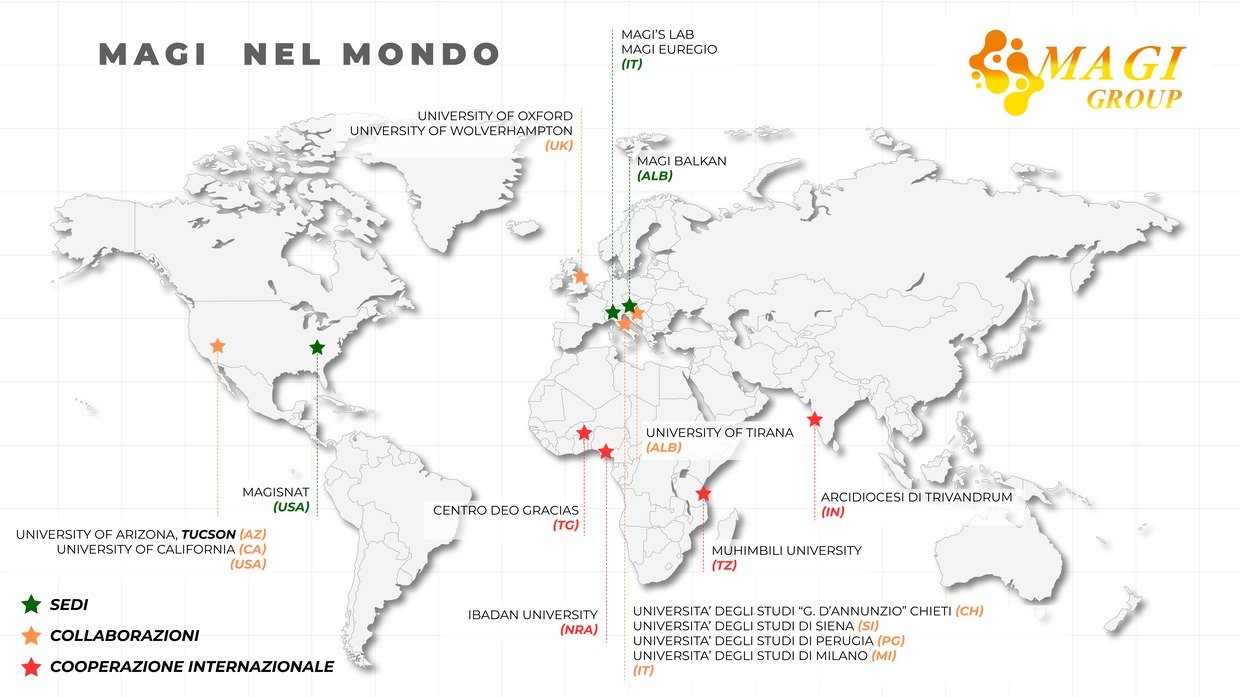 Il Gruppo MAGI, di ispirazione cattolica, ha avuto una crescita significativa sin dalla sua fondazione, sviluppando progetti di ricerca scientifica e iniziative umanitarie. Fondato nel 2006 con la nascita del primo laboratorio in Trentino-Alto Adige, MAGI ha ampliato la propria missione costruendo sedi e laboratori all’estero, a scopo umanitario, in Albania, Togo e India. Più recentemente, il gruppo ha dato vita a MAGISNAT LLC negli Stati Uniti, con l’obiettivo di promuovere test genetici e integratori personalizzati.